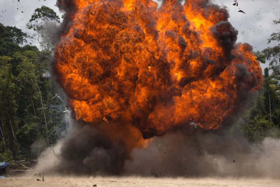 Más de 1.000 policías y soldados destruyeron unos 179 campamentos y maquinaria usada por mineros que extraen oro de forma ilegal valorada en 3 millones de dólares en la Amazonía peruana.